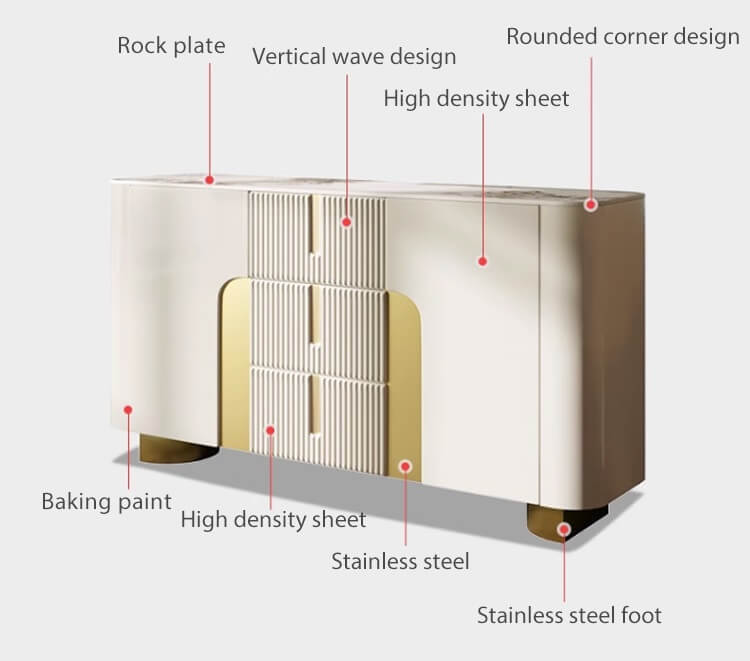 Descoperă comoda Luxoria, o comodă multifuncțională ce aduce un plus de stil în orice spațiu – dining, living sau hol. Aceasta piesa de mobilier combina durabilitatea cu designul contemporan. Blatul din piatră sinterizată oferă o suprafață robustă și elegantă, perfectă pentru a-ți expune articolele preferate