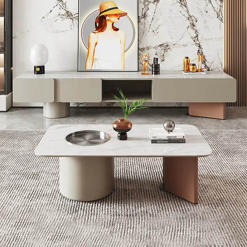Această comodă TV nu doar că servește ca suport pentru televizor, dar adaugă și un plus de stil și rafinament încăperii, oferind în același timp soluții practice de depozitare.
