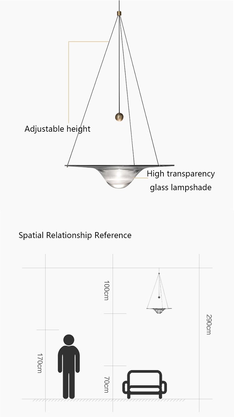 Lumina emisă de aceste pendule este una blândă, ideală pentru a crea o atmosferă caldă și primitoare. Construite cu atenție la detalii, cablurile subțiri care susțin corpul de iluminat contribuie la senzația de lejeritate și plutire.