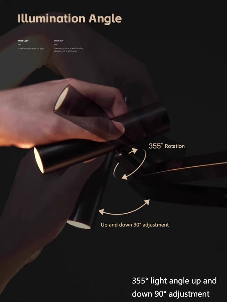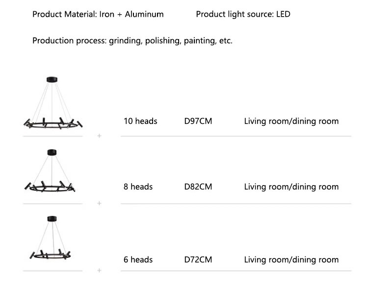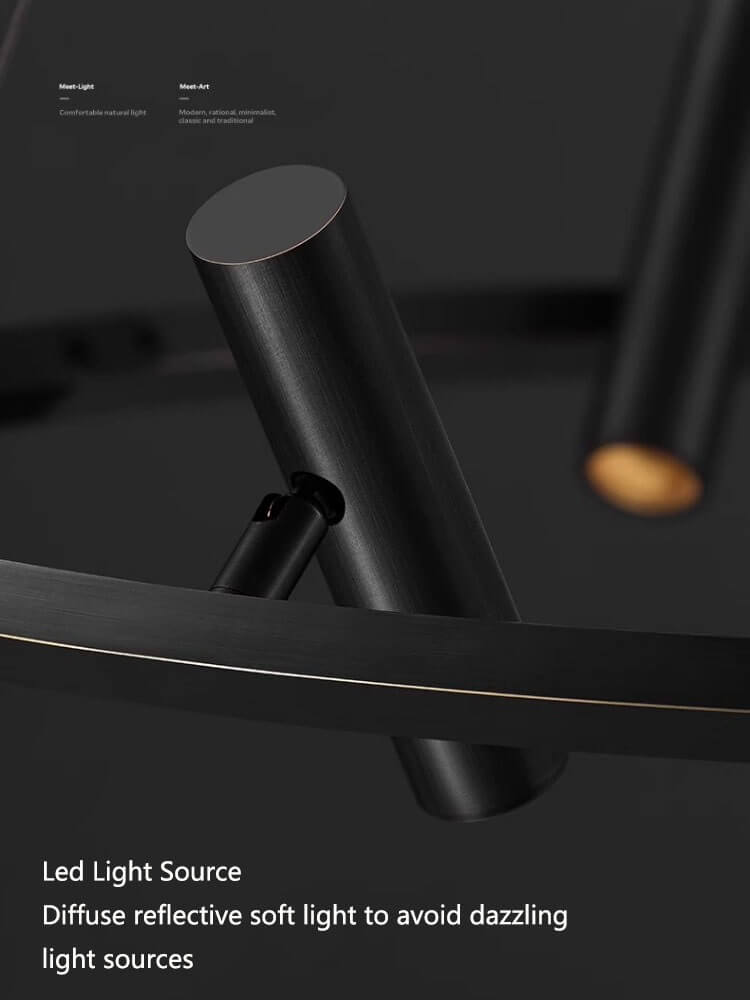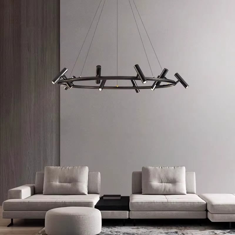 Acesta lustra moderna are un design minimalist și elegant. Elementul central este un cadru circular, negru mat, de care sunt atașate multiple spoturi individuale. Fiecare spot este conceput pentru a oferi o flexibilitate excepțională în direcționarea luminii, având o capacitate de rotație de 355 grade și o ajustare de 90 de grade în sus și în jos.