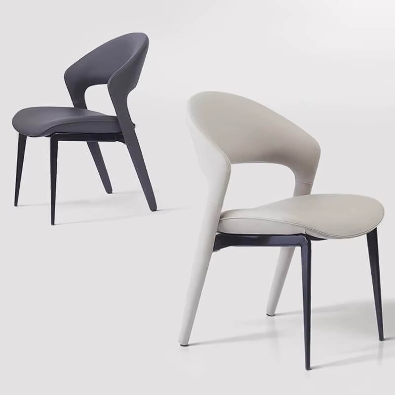 Acest scaun elegant îmbină un design modern cu un confort subtil. Liniile sale fluide și silueta curbată creează un aspect aerisit și primitor. Spătarul ușor înclinat oferă un suport discret, în timp ce șezutul pare a fi generos capitonat, invitând la relaxare. Tapițeria într-o nuanță neutră de gri conferă scaunului o versatilitate care îi permite să se integreze cu ușurință într-o varietate de decoruri.